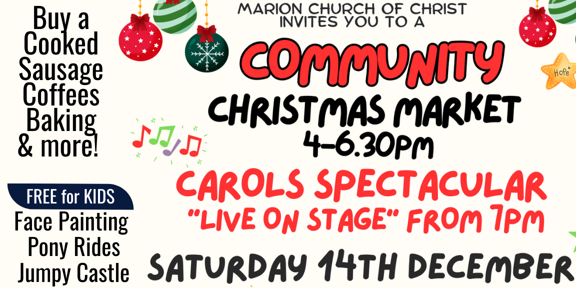 There's lots to do - time to share with one another, pick up some Christmas gifts from the Market Stalls, enjoy a Barista Coffee and cake, sausage sizzle and free activities for kids.